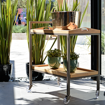 Designed by Luciano Mandelli, the Java Bar Cart combines practicality and sophistication for serving in outdoor spaces.
