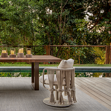 The invention of Tidelli’s nautical rope was a turning point. Replacing fiber with rope made Tidelli furniture more durable, comfortable, sustainable, and weather resistant. Nautical rope imitates nature with the look and feel of reed, while outlasting the effects of mother nature. Made with polyester thread imported from Holland, our nautical rope is braided by hand, does not absorb heat or liquids and allows for numerous wefts, thicknesses, densities and exclusive patterns. Tidelli nautical rope is made in-house to guarantee its 100% synthetic, high quality craftsmanship - which makes it so suitable for outdoor living. Over time, if exposed to direct sunlight, nautical rope may lose some of its luster - reducing the original hue. To best care for and clean your nautical rope, use a damp cloth in a solution of warm water and mild soap. Clean the rope and then rinse with another damp cloth with water only. Allow to air dry. If stains are deep or dirt persists, re-wet the rope with soap and water and rub. Rinse and let dry. Do not use water pressure cleaners or harsh chemicals (bleach, ammonia, etc.) that can affect the fibers that make up the rope. Never use solvents, removers, abrasive or alkaline (pH > 8) to clean the furniture. Please avoid using other chemical cleaning agents, high pressure cleaners, or abrasive cleaning products.