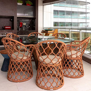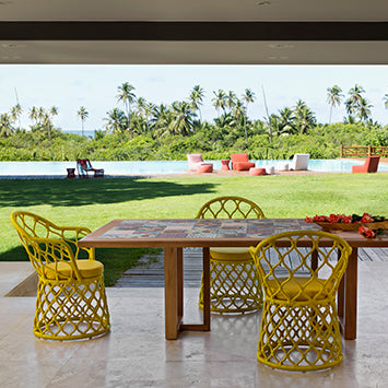 The invention of Tidelli’s nautical rope was a turning point. Replacing fiber with rope made Tidelli furniture more durable, comfortable, sustainable, and weather resistant. Nautical rope imitates nature with the look and feel of reed, while outlasting the effects of mother nature. Made with polyester thread imported from Holland, our nautical rope is braided by hand, does not absorb heat or liquids and allows for numerous wefts, thicknesses, densities and exclusive patterns. Tidelli nautical rope is made in-house to guarantee its 100% synthetic, high quality craftsmanship - which makes it so suitable for outdoor living. Over time, if exposed to direct sunlight, nautical rope may lose some of its luster - reducing the original hue. To best care for and clean your nautical rope, use a damp cloth in a solution of warm water and mild soap. Clean the rope and then rinse with another damp cloth with water only. Allow to air dry. If stains are deep or dirt persists, re-wet the rope with soap and water and rub. Rinse and let dry. Do not use water pressure cleaners or harsh chemicals (bleach, ammonia, etc.) that can affect the fibers that make up the rope. Never use solvents, removers, abrasive or alkaline (pH > 8) to clean the furniture. Please avoid using other chemical cleaning agents, high pressure cleaners, or abrasive cleaning products.
