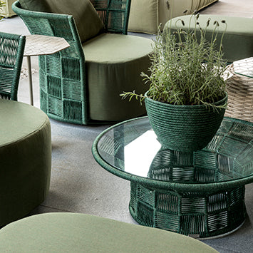 The invention of Tidelli’s nautical rope was a turning point. Replacing fiber with rope made Tidelli furniture more durable, comfortable, sustainable, and weather resistant. Nautical rope imitates nature with the look and feel of reed, while outlasting the effects of mother nature. Made with polyester thread imported from Holland, our nautical rope is braided by hand, does not absorb heat or liquids and allows for numerous wefts, thicknesses, densities and exclusive patterns. Tidelli nautical rope is made in-house to guarantee its 100% synthetic, high quality craftsmanship - which makes it so suitable for outdoor living. Over time, if exposed to direct sunlight, nautical rope may lose some of its luster - reducing the original hue. To best care for and clean your nautical rope, use a damp cloth in a solution of warm water and mild soap. Clean the rope and then rinse with another damp cloth with water only. Allow to air dry. If stains are deep or dirt persists, re-wet the rope with soap and water and rub. Rinse and let dry. Do not use water pressure cleaners or harsh chemicals (bleach, ammonia, etc.) that can affect the fibers that make up the rope. Never use solvents, removers, abrasive or alkaline (pH > 8) to clean the furniture. Please avoid using other chemical cleaning agents, high pressure cleaners, or abrasive cleaning products.