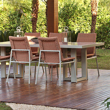 Aluminum offers infinite possibilities - infinite shapes and colors to literally shape and color your outdoor lifestyle. As a matter of fact, aluminum provides structure for more than 80% of Tidelli furniture. And with a monthly consumption of 15 tons, Tidelli is the largest aluminum processor in Bahia, Brazil. To keep the color and finish of your aluminum, apply automotive wax on the metallic structure every 90 days. Do not use scrub pads nor pressure cleaners to treat your Tidelli furniture. Plastic tips that isolate the furniture feet from the floor may suffer wear and tear depending on their use. Maintaining and replacing the protective feet (when necessary) will enhance the durability of your furniture.