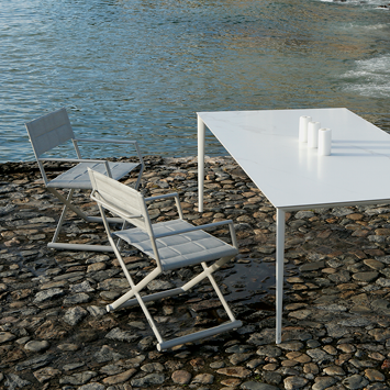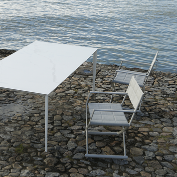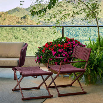 The structure is made of powder-coated aluminum, and the seat and backrest are available in Sling or handwoven nautical rope, combining durability, breathability, and a refined handcrafted touch. Perfect for outdoor dining rooms, balconies, and integrated spaces that call for personality and long-lasting quality.