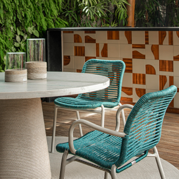With a light and smooth design, the handcrafted Rio chair in nautical rope is perfect for outdoor environments with a clean and organic style.