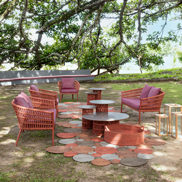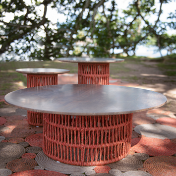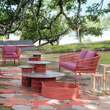 Designed by Luciano Mandelli and inspired by the paradise-like atmosphere of the Hawaiian island of Kauai, the Kauai Side Table Ø90cm combines practicality and elegance in a design made for outdoor spaces. A lightweight, durable aluminum frame is wrapped in handcrafted, weather-resistant nautical rope, adding personality to its look.