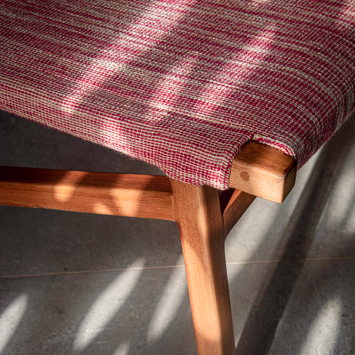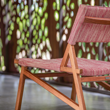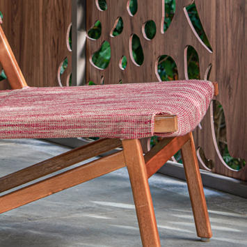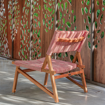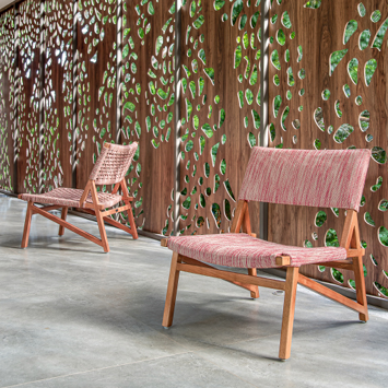 With a weather-resistant wooden structure, the Quechua lounge chair designed by Luciano Mandelli features a modern design in addition to fittings and angles that refer to Inca architecture.
