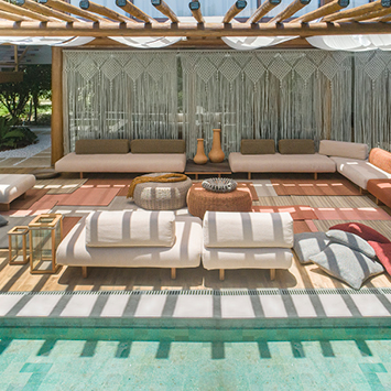 Eucalyptus Wood is used for the structure of selected Tidelli furniture, from armchairs to table tops. A team of 40 carpenters works solely with recycled wood from demolition or reforestation projects. Handmade craftsmanship upcycles raw materials. Wood that is not only sustainable but also unique. Adding personality to these one-of-a-kind products. Wood being a natural material, it may change color or even crack due to humidity levels or sudden changes in temperature. When left outdoors, wood undergoes a natural process of oxidation. To maintain and restore the original appearance of your Madeira wood Tidelli furniture, reapply varnish. We recommend purchasing directly from our resellers according to the tone of your furniture, in order to maintain the original appearance. Ask a Tidelli consultant what is the right product to use. Depending on the location of use and its exposure to the sun, the wood may lose its original appearance between 6 to 24 months.