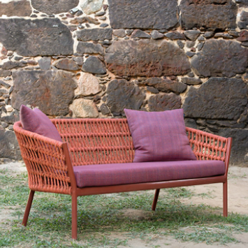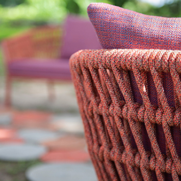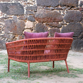 Designed by Luciano Mandelli and inspired by the paradise-like atmosphere of the Hawaiian island of Kauai, the Kauai Sofa blends elegance, comfort, and durability for outdoor living. A lightweight, durable aluminum frame is wrapped in handcrafted, weather-resistant nautical rope, while the upholstered seat and loose pillows provide coziness and versatility.