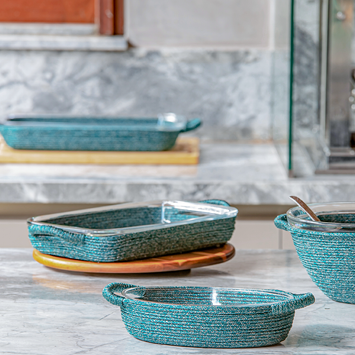 The Maui Rectangular Serving Dish S is compact and functional, handcrafted in nautical rope. Perfect for casual serving or decorating with charm.
