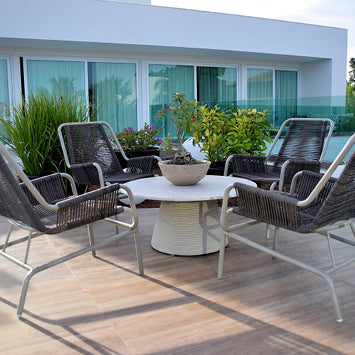 The invention of Tidelli’s nautical rope was a turning point. Replacing fiber with rope made Tidelli furniture more durable, comfortable, sustainable, and weather resistant. Nautical rope imitates nature with the look and feel of reed, while outlasting the effects of mother nature. Made with polyester thread imported from Holland, our nautical rope is braided by hand, does not absorb heat or liquids and allows for numerous wefts, thicknesses, densities and exclusive patterns. Tidelli nautical rope is made in-house to guarantee its 100% synthetic, high quality craftsmanship - which makes it so suitable for outdoor living. Over time, if exposed to direct sunlight, nautical rope may lose some of its luster - reducing the original hue. To best care for and clean your nautical rope, use a damp cloth in a solution of warm water and mild soap. Clean the rope and then rinse with another damp cloth with water only. Allow to air dry. If stains are deep or dirt persists, re-wet the rope with soap and water and rub. Rinse and let dry. Do not use water pressure cleaners or harsh chemicals (bleach, ammonia, etc.) that can affect the fibers that make up the rope. Never use solvents, removers, abrasive or alkaline (pH > 8) to clean the furniture. Please avoid using other chemical cleaning agents, high pressure cleaners, or abrasive cleaning products.