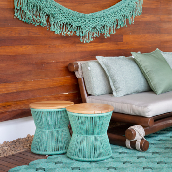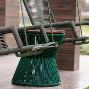 Featuring an aluminum frame, eucalyptus wood seat, and nautical rope finish, it’s perfect as an extra seat or side table in terraces, decks, or gourmet spaces—uniting function and design.