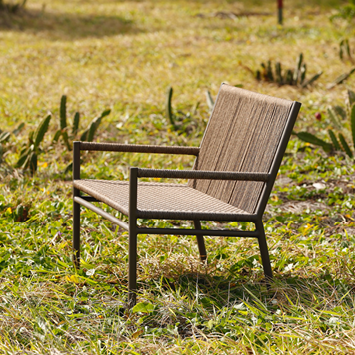 Built with a welded aluminum frame, handwoven rope seat and backrest, and aluminum armrests.