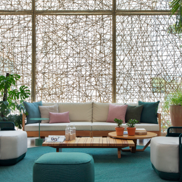 Eucalyptus Wood is used for the structure of selected Tidelli furniture, from armchairs to table tops. A team of 40 carpenters works solely with recycled wood from demolition or reforestation projects. Handmade craftsmanship upcycles raw materials. Wood that is not only sustainable but also unique. Adding personality to these one-of-a-kind products. Wood being a natural material, it may change color or even crack due to humidity levels or sudden changes in temperature. When left outdoors, wood undergoes a natural process of oxidation. To maintain and restore the original appearance of your Madeira wood Tidelli furniture, reapply varnish. We recommend purchasing directly from our resellers according to the tone of your furniture, in order to maintain the original appearance. Ask a Tidelli consultant what is the right product to use. Depending on the location of use and its exposure to the sun, the wood may lose its original appearance between 6 to 24 months.