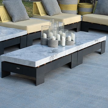 Eucalyptus Wood is used for the structure of selected Tidelli furniture, from armchairs to table tops. A team of 40 carpenters works solely with recycled wood from demolition or reforestation projects. Handmade craftsmanship upcycles raw materials. Wood that is not only sustainable but also unique. Adding personality to these one-of-a-kind products. Wood being a natural material, it may change color or even crack due to humidity levels or sudden changes in temperature. When left outdoors, wood undergoes a natural process of oxidation. To maintain and restore the original appearance of your Madeira wood Tidelli furniture, reapply varnish. We recommend purchasing directly from our resellers according to the tone of your furniture, in order to maintain the original appearance. Ask a Tidelli consultant what is the right product to use. Depending on the location of use and its exposure to the sun, the wood may lose its original appearance between 6 to 24 months.