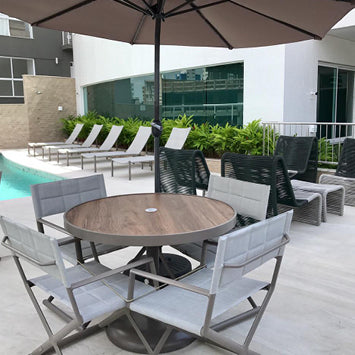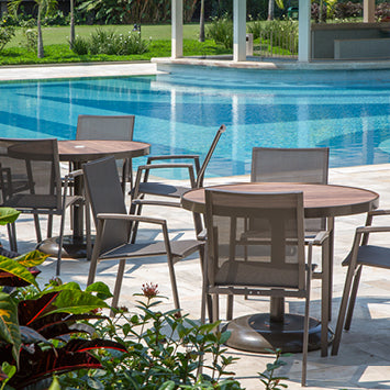 Aluminum offers infinite possibilities - infinite shapes and colors to literally shape and color your outdoor lifestyle. As a matter of fact, aluminum provides structure for more than 80% of Tidelli furniture. And with a monthly consumption of 15 tons, Tidelli is the largest aluminum processor in Bahia, Brazil. To keep the color and finish of your aluminum, apply automotive wax on the metallic structure every 90 days. Do not use scrub pads nor pressure cleaners to treat your Tidelli furniture. Plastic tips that isolate the furniture feet from the floor may suffer wear and tear depending on their use. Maintaining and replacing the protective feet (when necessary) will enhance the durability of your furniture.