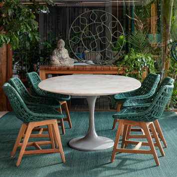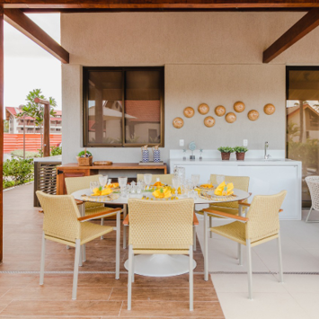 Perfect for gourmet balconies, terraces, and open-air social spaces, comfortably seating larger groups.