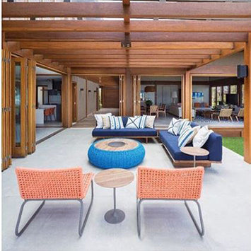 Eucalyptus Wood is used for the structure of selected Tidelli furniture, from armchairs to table tops. A team of 40 carpenters works solely with recycled wood from demolition or reforestation projects. Handmade craftsmanship upcycles raw materials. Wood that is not only sustainable but also unique. Adding personality to these one-of-a-kind products. Wood being a natural material, it may change color or even crack due to humidity levels or sudden changes in temperature. When left outdoors, wood undergoes a natural process of oxidation. To maintain and restore the original appearance of your Madeira wood Tidelli furniture, reapply varnish. We recommend purchasing directly from our resellers according to the tone of your furniture, in order to maintain the original appearance. Ask a Tidelli consultant what is the right product to use. Depending on the location of use and its exposure to the sun, the wood may lose its original appearance between 6 to 24 months.