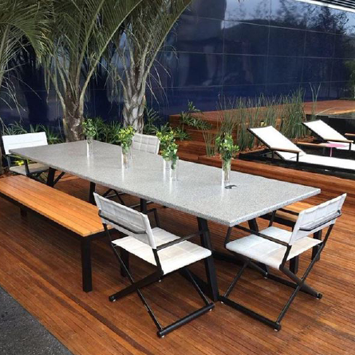 Aluminum offers infinite possibilities - infinite shapes and colors to literally shape and color your outdoor lifestyle. As a matter of fact, aluminum provides structure for more than 80% of Tidelli furniture. And with a monthly consumption of 15 tons, Tidelli is the largest aluminum processor in Bahia, Brazil. To keep the color and finish of your aluminum, apply automotive wax on the metallic structure every 90 days. Do not use scrub pads nor pressure cleaners to treat your Tidelli furniture. Plastic tips that isolate the furniture feet from the floor may suffer wear and tear depending on their use. Maintaining and replacing the protective feet (when necessary) will enhance the durability of your furniture.