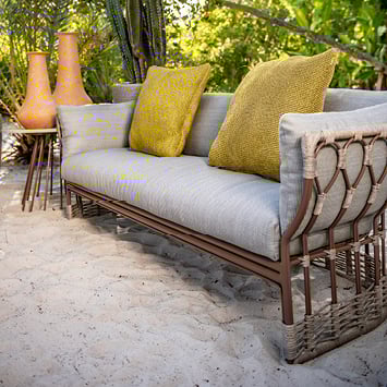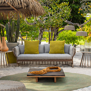 The invention of Tidelli’s nautical rope was a turning point. Replacing fiber with rope made Tidelli furniture more durable, comfortable, sustainable, and weather resistant. Nautical rope imitates nature with the look and feel of reed, while outlasting the effects of mother nature. Made with polyester thread imported from Holland, our nautical rope is braided by hand, does not absorb heat or liquids and allows for numerous wefts, thicknesses, densities and exclusive patterns. Tidelli nautical rope is made in-house to guarantee its 100% synthetic, high quality craftsmanship - which makes it so suitable for outdoor living. Over time, if exposed to direct sunlight, nautical rope may lose some of its luster - reducing the original hue. To best care for and clean your nautical rope, use a damp cloth in a solution of warm water and mild soap. Clean the rope and then rinse with another damp cloth with water only. Allow to air dry. If stains are deep or dirt persists, re-wet the rope with soap and water and rub. Rinse and let dry. Do not use water pressure cleaners or harsh chemicals (bleach, ammonia, etc.) that can affect the fibers that make up the rope. Never use solvents, removers, abrasive or alkaline (pH > 8) to clean the furniture. Please avoid using other chemical cleaning agents, high pressure cleaners, or abrasive cleaning products.