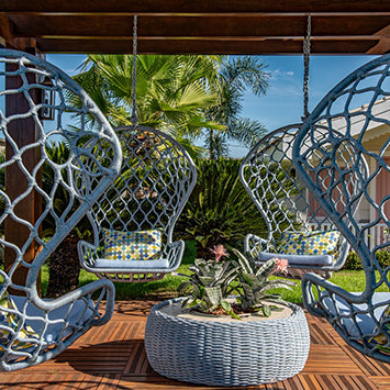A invenção da corda náutica da Tidelli foi um ponto de viragem. A substituição da fibra pela corda tornou o mobiliário Tidelli mais durável, confortável, sustentável e resistente às intempéries. A corda náutica imita a natureza com o aspeto e o toque do junco, ao mesmo tempo que resiste aos efeitos da mãe natureza. Fabricada com fio de poliéster importado da Holanda, a nossa corda náutica é entrançada à mão, não absorve calor nem líquidos e permite inúmeras tramas, espessuras, densidades e padrões exclusivos. A corda náutica Tidelli é fabricada internamente para garantir a sua qualidade artesanal 100% sintética e de alta qualidade - o que a torna tão adequada para a vida ao ar livre. Com o tempo, se exposta à luz solar direta, a corda náutica pode perder algum do seu brilho - reduzindo a tonalidade original. Para melhor cuidar e limpar a sua corda náutica, utilize um pano húmido numa solução de água morna e sabão neutro. Limpe a corda e depois enxagúe-a com outro pano húmido apenas com água. Deixar secar ao ar. Se as manchas forem profundas ou a sujidade persistir, volte a molhar a corda com água e sabão e esfregue. Enxaguar e deixar secar. Não utilizar produtos de limpeza com pressão de água ou produtos químicos agressivos (lixívia, amoníaco, etc.) que possam afetar as fibras que compõem a corda. Nunca utilizar solventes, produtos de remoção, abrasivos ou alcalinos (pH > 8) para limpar os móveis. Evite utilizar outros produtos químicos de limpeza, produtos de limpeza a alta pressão ou produtos de limpeza abrasivos.