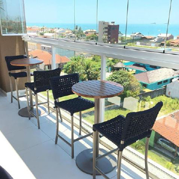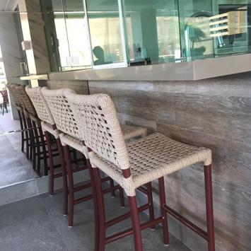 Ideal para bancadas em varandas e áreas gourmet, une durabilidade, conforto e elegância atemporal para compor ambientes externos.