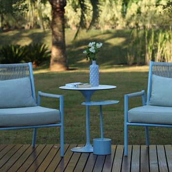 O alumínio oferece infinitas possibilidades - infinitas formas e cores para literalmente moldar e colorir o seu estilo de vida ao ar livre. De facto, o alumínio fornece a estrutura para mais de 80% do mobiliário da Tidelli. E com um consumo mensal de 15 toneladas, a Tidelli é a maior processadora de alumínio da Bahia, Brasil. Para manter a cor e o acabamento do seu alumínio, aplique cera automotiva na estrutura metálica a cada 90 dias. Não utilize esponjas ou limpadores de pressão para tratar seu móvel Tidelli. As ponteiras plásticas que isolam os pés do móvel do piso podem sofrer desgaste conforme o uso. A manutenção e a substituição dos pés de proteção (quando necessário) aumentam a durabilidade do seu móvel.
