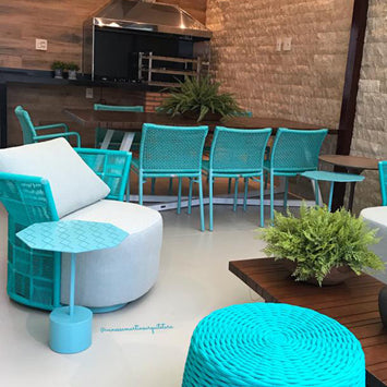 O alumínio oferece infinitas possibilidades - infinitas formas e cores para literalmente moldar e colorir o seu estilo de vida ao ar livre. De facto, o alumínio fornece a estrutura para mais de 80% do mobiliário da Tidelli. E com um consumo mensal de 15 toneladas, a Tidelli é a maior processadora de alumínio da Bahia, Brasil. Para manter a cor e o acabamento do seu alumínio, aplique cera automotiva na estrutura metálica a cada 90 dias. Não utilize esponjas ou limpadores de pressão para tratar seu móvel Tidelli. As ponteiras plásticas que isolam os pés do móvel do piso podem sofrer desgaste conforme o uso. A manutenção e a substituição dos pés de proteção (quando necessário) aumentam a durabilidade do seu móvel.
