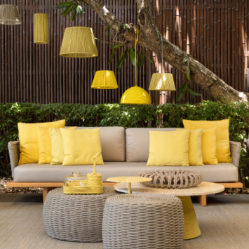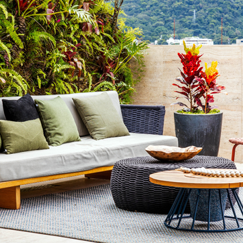 Ideal para varandas, lounges ou salas integradas, promove relaxamento com sofisticação em ambientes internos ou externos cobertos.
