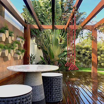 A invenção da corda náutica da Tidelli foi um ponto de viragem. A substituição da fibra pela corda tornou o mobiliário Tidelli mais durável, confortável, sustentável e resistente às intempéries. A corda náutica imita a natureza com o aspeto e o toque do junco, ao mesmo tempo que resiste aos efeitos da mãe natureza. Fabricada com fio de poliéster importado da Holanda, a nossa corda náutica é entrançada à mão, não absorve calor nem líquidos e permite inúmeras tramas, espessuras, densidades e padrões exclusivos. A corda náutica Tidelli é fabricada internamente para garantir a sua qualidade artesanal 100% sintética e de alta qualidade - o que a torna tão adequada para a vida ao ar livre. Com o tempo, se exposta à luz solar direta, a corda náutica pode perder algum do seu brilho - reduzindo a tonalidade original. Para melhor cuidar e limpar a sua corda náutica, utilize um pano húmido numa solução de água morna e sabão neutro. Limpe a corda e depois enxagúe-a com outro pano húmido apenas com água. Deixar secar ao ar. Se as manchas forem profundas ou a sujidade persistir, volte a molhar a corda com água e sabão e esfregue. Enxaguar e deixar secar. Não utilizar produtos de limpeza com pressão de água ou produtos químicos agressivos (lixívia, amoníaco, etc.) que possam afetar as fibras que compõem a corda. Nunca utilizar solventes, produtos de remoção, abrasivos ou alcalinos (pH > 8) para limpar os móveis. Evite utilizar outros produtos químicos de limpeza, produtos de limpeza a alta pressão ou produtos de limpeza abrasivos.