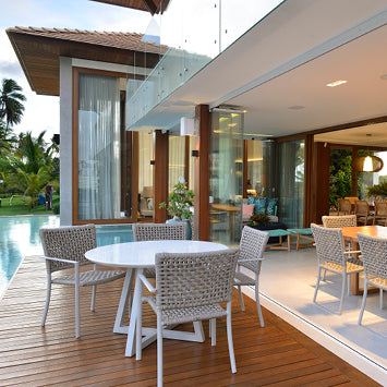 O alumínio oferece infinitas possibilidades - infinitas formas e cores para literalmente moldar e colorir o seu estilo de vida ao ar livre. De facto, o alumínio fornece a estrutura para mais de 80% do mobiliário da Tidelli. E com um consumo mensal de 15 toneladas, a Tidelli é a maior processadora de alumínio da Bahia, Brasil. Para manter a cor e o acabamento do seu alumínio, aplique cera automotiva na estrutura metálica a cada 90 dias. Não utilize esponjas ou limpadores de pressão para tratar seu móvel Tidelli. As ponteiras plásticas que isolam os pés do móvel do piso podem sofrer desgaste conforme o uso. A manutenção e a substituição dos pés de proteção (quando necessário) aumentam a durabilidade do seu móvel.