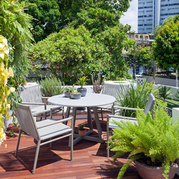 A madeira de eucalipto é utilizada na estrutura de móveis selecionados da Tidelli, de poltronas a tampos de mesa. Uma equipa de 40 carpinteiros trabalha exclusivamente com madeira reciclada proveniente de demolições ou de projectos de reflorestação. O trabalho artesanal recicla a matéria-prima. Uma madeira não só sustentável, mas também única. O que confere personalidade a estes produtos únicos. Sendo a madeira um material natural, pode mudar de cor ou mesmo rachar devido aos níveis de humidade ou a mudanças bruscas de temperatura. Quando deixada ao ar livre, a madeira sofre um processo natural de oxidação. Para manter e restaurar o aspeto original dos seus móveis Tidelli em madeira da Madeira, volte a aplicar verniz. Recomendamos a compra direta nos nossos revendedores, de acordo com a tonalidade do seu móvel, para manter o aspeto original. Pergunte a um consultor Tidelli qual o produto adequado a utilizar. Dependendo do local de uso e da exposição ao sol, a madeira pode perder o aspeto original entre 6 e 24 meses.