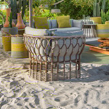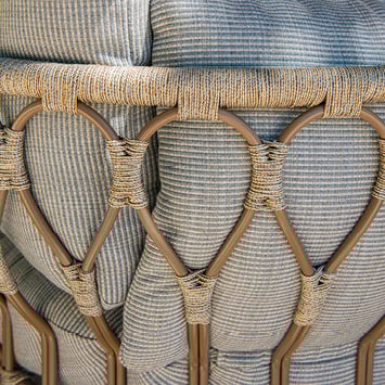 A invenção da corda náutica da Tidelli foi um ponto de viragem. A substituição da fibra pela corda tornou o mobiliário Tidelli mais durável, confortável, sustentável e resistente às intempéries. A corda náutica imita a natureza com o aspeto e o toque do junco, ao mesmo tempo que resiste aos efeitos da mãe natureza. Fabricada com fio de poliéster importado da Holanda, a nossa corda náutica é entrançada à mão, não absorve calor nem líquidos e permite inúmeras tramas, espessuras, densidades e padrões exclusivos. A corda náutica Tidelli é fabricada internamente para garantir a sua qualidade artesanal 100% sintética e de alta qualidade - o que a torna tão adequada para a vida ao ar livre. Com o tempo, se exposta à luz solar direta, a corda náutica pode perder algum do seu brilho - reduzindo a tonalidade original. Para melhor cuidar e limpar a sua corda náutica, utilize um pano húmido numa solução de água morna e sabão neutro. Limpe a corda e depois enxagúe-a com outro pano húmido apenas com água. Deixar secar ao ar. Se as manchas forem profundas ou a sujidade persistir, volte a molhar a corda com água e sabão e esfregue. Enxaguar e deixar secar. Não utilizar produtos de limpeza com pressão de água ou produtos químicos agressivos (lixívia, amoníaco, etc.) que possam afetar as fibras que compõem a corda. Nunca utilizar solventes, produtos de remoção, abrasivos ou alcalinos (pH > 8) para limpar os móveis. Evite utilizar outros produtos químicos de limpeza, produtos de limpeza a alta pressão ou produtos de limpeza abrasivos.