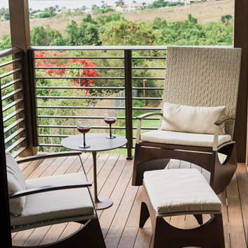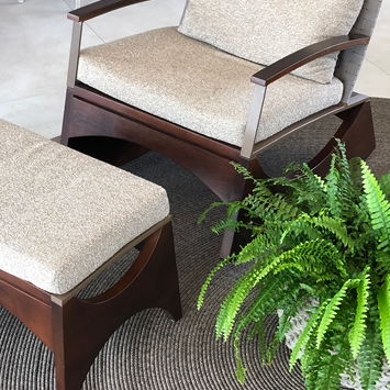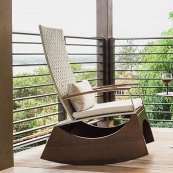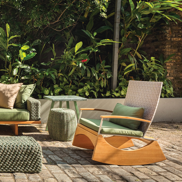 Stylish, the Ioio Rocking Chair is the ideal choice for outdoor environments. Its sling back, upholstered seat, back cushion and eucalyptus wood feet guarantee a look with a lot of personality.